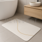 Nowoczesna mata łazienkowa o wymiarach 50 x 80 cm to eleganckie i funkcjonalne rozwiązanie do każdej łazienki. Wyróżnia się delikatnym geometrycznym wzorem w odcieniach beżu, uzupełnionym o subtelną złotą linię, która nadaje jej stylowego i luksusowego wyglądu. Doskonale wpisuje się w nowoczesne, minimalistyczne i eleganckie wnętrza.