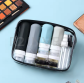 Transparentna kosmetyczka ułatwia szybkie znalezienie potrzebnych produktów, a szczelne butelki chronią zawartość przed wyciekiem. Różne rodzaje pojemników oraz dołączone akcesoria pozwalają na komfortowe przelewanie i aplikację kosmetyków.